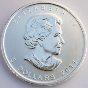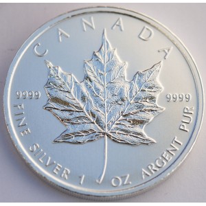 Il existe de plus un équivalent en pièce d’argent, en 5$. Cette pièce est aussi très demandée. Les deux types de Maple Leaf sont considérés comme des valeurs refuges. Le côté pile varie selon les années d’émissions en fonction de l’âge de la Reine.