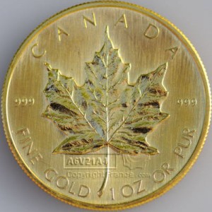 La pièce n’est pas boursable mais ce revend au cours de l’once d’or. La pièce a un diamètre de 30 mm.  Sur le côté pile, on reconnait le profil de la Reine Elizabeth II, et en légende « ELIZABETH II/ 5 DOLLARS 1998 ». Sur le côté face,  la légende «  CANADA - FINE GOLD - 1OZ OR PUR/ 9999 - 9999. » entoure une feuille d’érable. C’est une pièce très demandée en investissement.