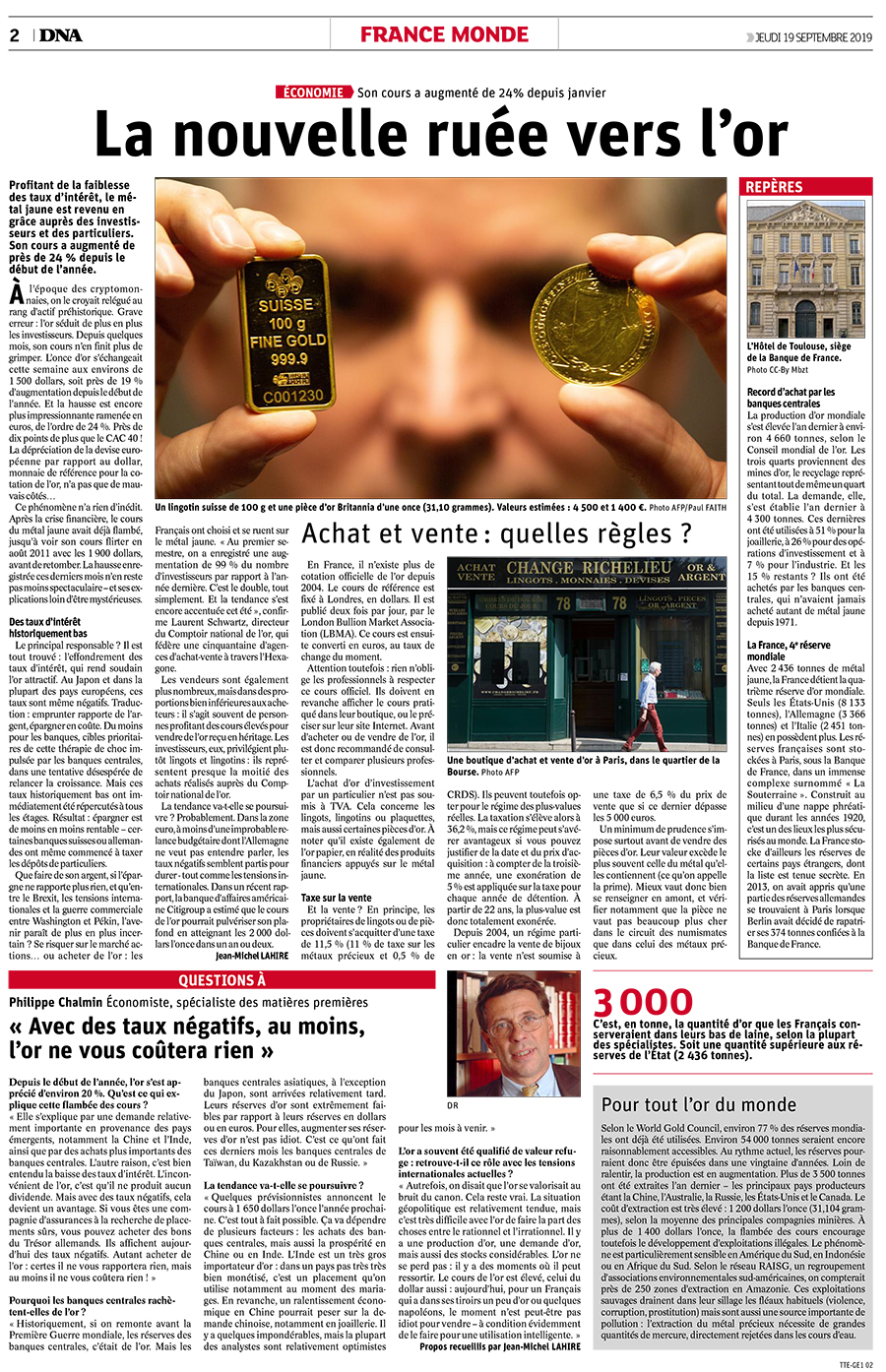 Sud Ouest - Comptoir National de l'Or Demande et marché de l'or