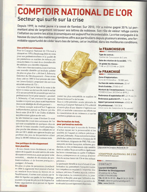 Parution dans Entreprise et Franchise Comptoir National de l'Or