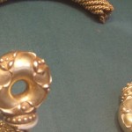 Ce collier celtique en matériau précieux datant de l’âge du fer, a été retrouvé brisé dans un champ près du village de Sedgeford dans le Norfolk. En 1965, lors du hersage du champ au trésor on retrouva le plus gros morceau du torque. Ce n’est qu’en 2004 que l’extrémité manquante fut retrouvée au cours d’une fouille archéologique. C’est ainsi qu’à Pâques de l’année 2004, le Sedgeford Historical and Archeological Research Porject mis à jour le « chaînon manquant » à 400 mètres de l’endroit où le premier morceau avait été découvert. Classé objet abandonné, le second morceau fut racheté par le British Museum pour qu’enfin le torque soit entier. Daté entre 200 av. J-C et 75 av. J-C, le torque est fait de fils torsadés. En effet, 48 fils de 2mm de diamètre ont été torsadés par paires pour former 24 double-fils. Ensuite, toujours par le procédé de la torsade, le corps du torque a été formé. Au total 25 mètres de fils d’or furent utilisés pour créer le fameux torque. Par ailleurs, le torque de Sedgeford est tellement identique à celui trouvé au Newark-on-Trent dans le Nottinghamshire, qu’il se pourrait bien qu’il ait été réalisé par le même orfèvre. Quand on sait que le torque de Sedgeford a été daté entre 200 av. J-C et 75 av. J-C, en sus de sa valeur en matériau précieux, il a une valeur historique indéniable et c’est tout un pan de l’histoire des celtes qu’il symbolise.