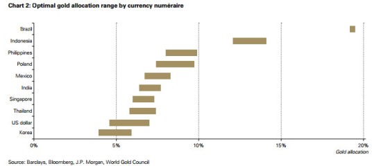L’Or a été découvert au Brésil, dans les gisements de l’Etat du Minas Gerais en 1697, avec l’arrivée des portugais, c’est alors qu’a débuté le « siècle de l’or ». L’exploitation de l’or se fera particulièrement au 18ème siècle grâce aux esclaves venus d’Afrique, ces derniers comptaient environ trois millions. A cette époque il y a avait un si grand nombre de chercheurs d’or que le roi du Portugal, Jean V avait pris la décision d’imposer une autorisation et un passeport particulier pour les étrangers qui voulaient faire fortune au Brésil… Les pièces en or à l’effigie de Jean V, telle que le reis ou encore l’escudos, ont connu une notoriété mondiale grâce notamment aux portugais considérés comme étant un « peuple de navigateurs ». La production d’or au Brésil, au 18ème siècle valait toute la production des colonies espagnoles d’Amérique du Sud. Mais très peu d’or y est resté, expédié au Portugal puis en Angleterre pour l’achat de produits manufacturés et la construction de luxueux monuments. Actuellement, le pays producteur de pétrole et de gaz naturel, sixième puissance économique mondiale, traverse une période extrêmement délicate depuis 3 ans environ. Son taux de croissance est passé de 2,7% en 2011 à 0,9% en 2012. Et malgré le plan de l’ancien président Cardoso qui a réussi à stopper l’évolution exponentielle de l’inflation, renforçant ainsi la crédibilité de la monnaie nationale, le real, pendant plus d’une vingtaine d’années, celle-ci se trouve aujourd’hui en grande difficulté. C’est d’ailleurs le cas pour les autres monnaies du reste du groupe des pays émergents tel que l’Afrique du Sud ou l’Inde depuis 2013 ! Cela handicape bien évidemment les investissements étrangers, l’entrée de capitaux et cela pèse sur la balance commerciale. Voici donc ce qu’il en est sur le plan économique ! S’agissant du niveau social, les inégalités auxquelles nous assistons, n’ont jamais été aussi lourdes de conséquences avec la montée en puissance de la violence et de la criminalité. C’est dans cette pesante atmosphère de grande incertitude que les brésiliens se tournent de plus en plus vers l’or en lui octroyant une place majeure ! Le fait est que depuis 2012, le pays cherche à diversifier ses réserves et a quasiment doublé ses réserves d’or, passant de la 51ème place en août 2012 avec 33,6 tonnes d’or, à la 42ème place avec 67,2 tonnes en juin dernier. Le graphique ci-dessous est très intéressant dans le sens où nous voyons bien que la monnaie brésilienne est celle pour laquelle il existe le plus de contrepartie en or physique. En acquérant de l’or, les brésiliens cherchent en réalité à relever un défi socio-économique car le véritable enjeu dorénavant, n’est hélas plus footballistique, du moins pour quelque temps… !