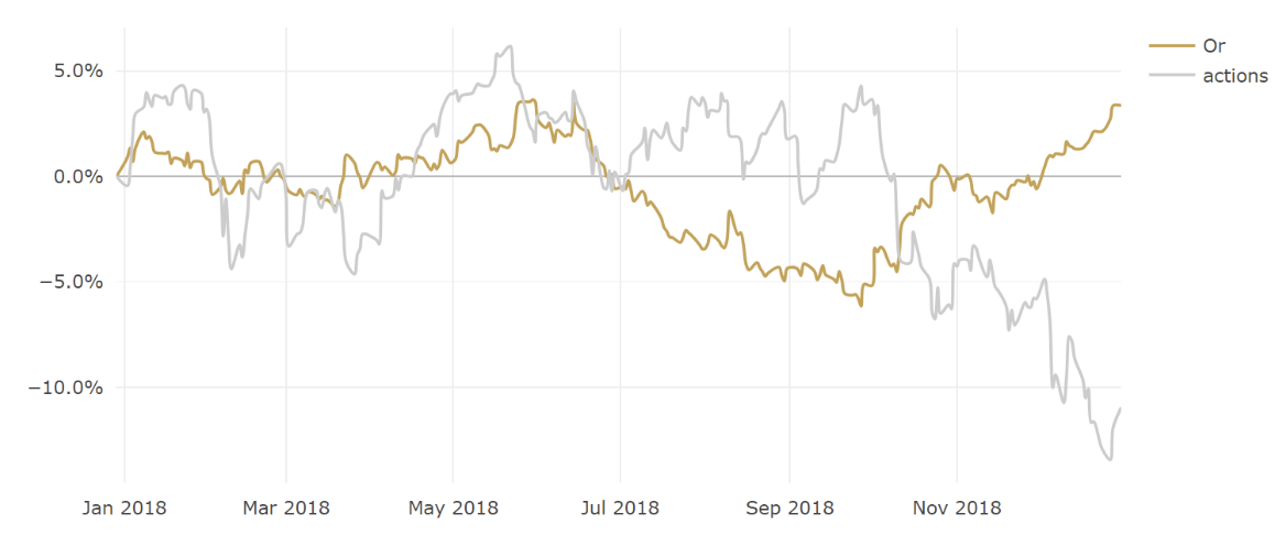 Graphique : Performance de l’or et du CAC 40 en 2018