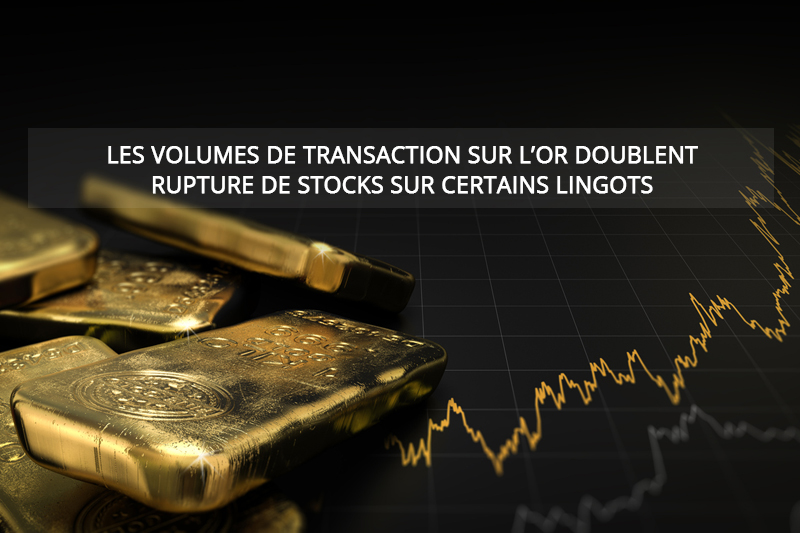 Le vent de panique qui a soufflé sur les marchés depuis le lundi 9 mars, que l’on qualifie désormais de lundi noir, a poussé les investisseurs à réévaluer leurs options et à s’adapter. En résistant à l’effondrement des bourses, l’or s’est plutôt bien comporté et a suscité l’intérêt. Citant une note de la London Bullion Market Association (LBMA), l’agence Bloomberg rapporte ainsi que les volumes d’échange de métal jaune à Londres ont atteint 100 milliards de dollars en ce fameux lundi noir, soit plus du double des volumes habituels*. Pour donner un ordre de grandeur, cela représente plus de 1800 tonnes d’or échangées en une journée, soit presque deux fois les réserves de la Suisse… La photo est similaire à New-York avec les volumes de transactions en futures sur l’or. Depuis le début de la correction des marchés le 19 février, 1650 tonnes d’or sont en moyenne échangées quotidiennement sur le Comex, contre une moyenne d’environ 1040 tonnes en 2019, soit une augmentation de près de 60%. Avec un pic à 2255 tonnes le 6 mars. Mais il n’y a pas que les grands investisseurs internationaux qui s’intéressent à l’or investissement, il y a aussi l’épargnant français. Au Comptoir National de l’Or, nous constatons une forte augmentation de tous les indicateurs d’activité : demandes de renseignement, visites sur notre site, et surtout les achats d’or investissement, qui ont globalement doublé depuis la dernière semaine de février. Enfin, autre signe que la demande d’or physique est forte, quelques produits d’or investissement sont en rupture de stock, notamment les lingotins de 50 et 100 grammes qui sont particulièrement appréciés par les épargnants ayant un certain patrimoine. * 45 milliards de dollars de transactions sur l’or en moyenne sur le dernier trimestre 2019, selon la LBMA.