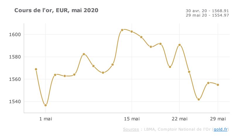 - Cours de l’or en euros : léger tassement en mai (-0.9%)