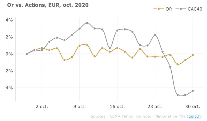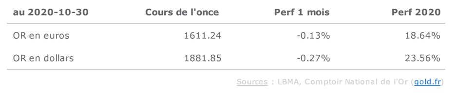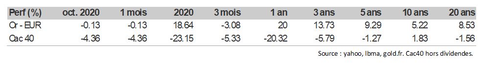 - Or en euros : -0.1% en octobre ; +18.6% en 2020