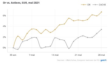 Sur le mois, l’or a tiré son épingle du jeu par rapport aux autres actifs. Les actions du Cac-40 se sont appréciées de 3.4% en mai, tandis que le bitcoin a perdu près de 34%.