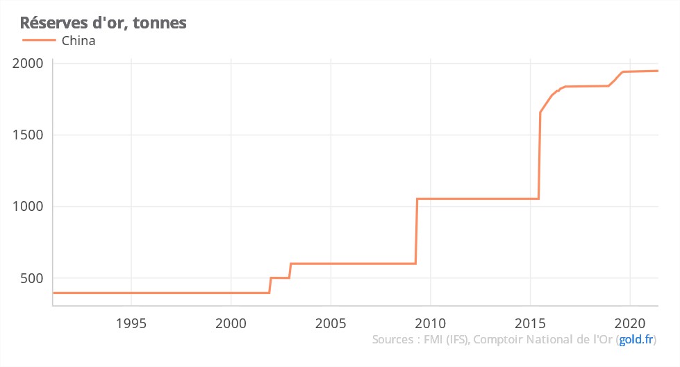 C’est la question qui agite les spécialistes du sujet : quelle quantité d’or détient réellement la Chine, 1er pays producteur d’or et prétendante au fauteuil de première puissance mondiale ? Ses réserves déclarées au FMI sont de 1948 tonnes, mais beaucoup pensent que le pays accumule discrètement le métal jaune.