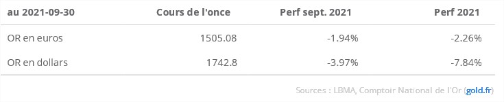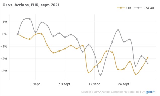 - Cours de l’or en euros : -1.9% en septembre, -2.3% sur 2021