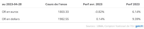 • Cours de l’or en euro : -1% en avril, +6.1% sur 2023