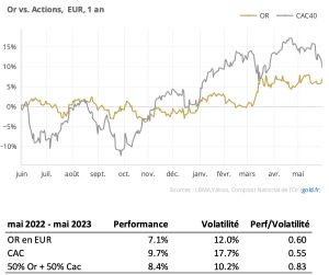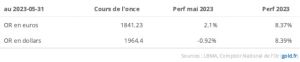 - Cours de l’or en euro : +2.1% en mai, + 8.37% en 2023
