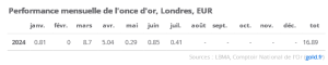 - 2024 : or +16.9% ; CAC40 -0.4%