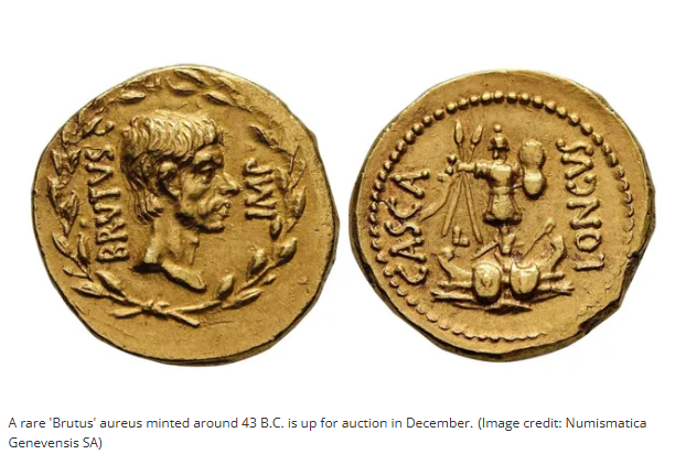 Une frappe d’époque, témoin silencieux de la chute d’un empire, est sur le point de changer de mains. Entrez dans le cercle très fermé des détenteurs d’un morceau d’histoire à l’effigie de Brutus. La dernière fois que cette pièce a été vendue, c’était en 2006 à un célèbre collectionneur, mais elle est à nouveau sur le marché. C’est possible de l’acquérir ces prochains jours, car une grande vente aux enchères de pièces d’or et pièces rares historiques a lieu à Genève, organisé par Numismatica Genevensis SA. En cliquant sur ce lien, vous verrez le catalogue de vente de toutes ces incroyables pièces, toutes plus rares et surprenantes les unes que les autres.
