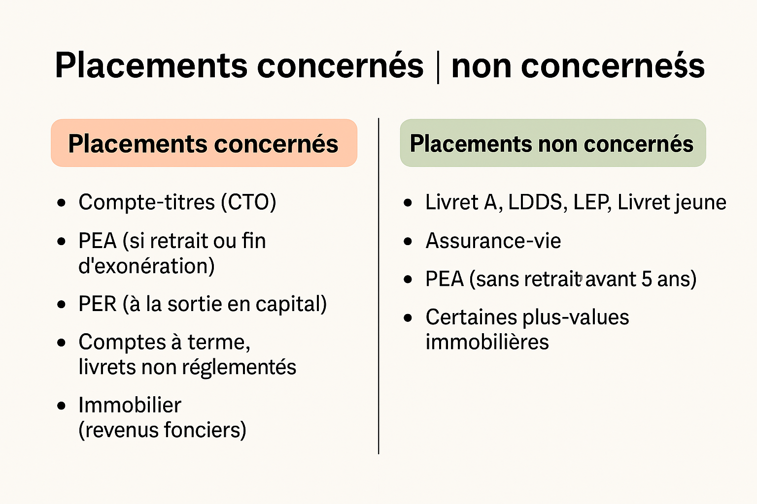 Même si la réforme n’est pas encore définitivement tranchée, elle suscite déjà un fort intérêt chez les épargnants et les investisseurs. L’enjeu est simple : certains placements seront directement touchés par l’augmentation des prélèvements sociaux, tandis que d’autres resteront totalement en dehors du champ de la réforme.