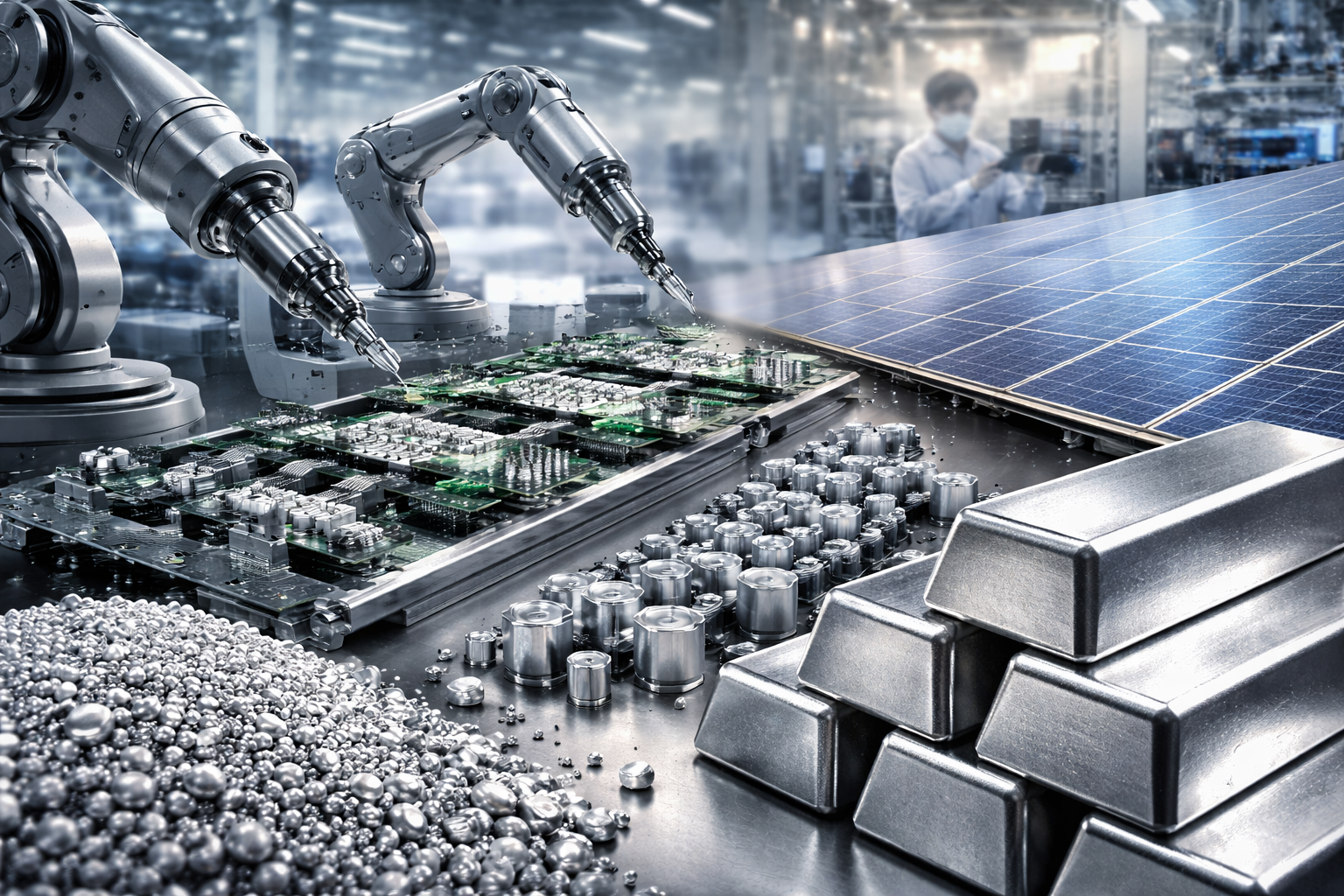Un exemple parlant : le secteur photovoltaïque consomme à lui seul plus de 10 % de la production annuelle d’argent, une part qui s’est renforcée avec l’essor des capacités solaires.