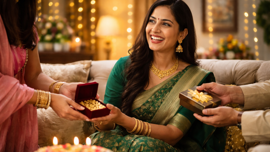 Traditionnellement en Inde, offrir des bijoux en or aux femmes faisait partie des gestes culturels les plus ancrés. Mariages, fêtes religieuses, naissances ou célébrations familiales donnaient lieu à des dons de colliers, bracelets ou parures, à la fois symboles de statut social, de sécurité et de transmission patrimoniale.