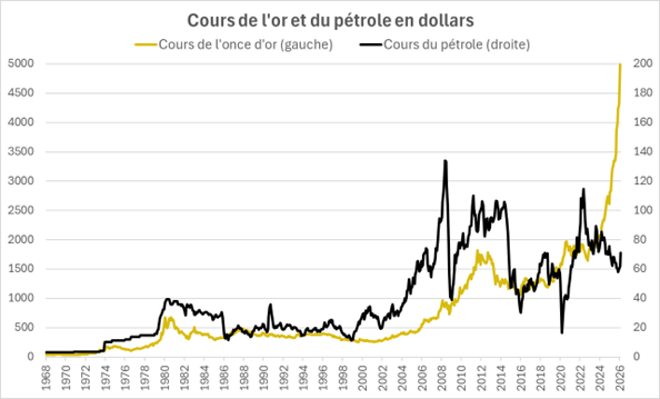 Le lien entre pétrole et or n’est pas mécanique : la corrélation entre les deux actifs reste relativement faible. Mais lors des grands chocs énergétiques, les deux marchés ont souvent progressé de concert.